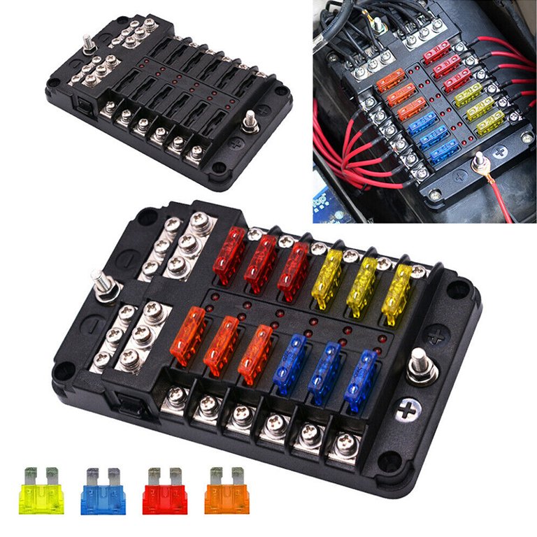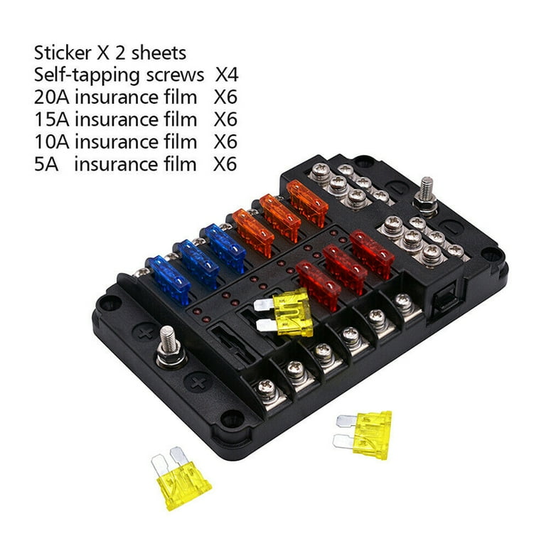 12 Way Car Boat Bus Blade Fuse Box Ato Atc Block Holder Cover Panel 12v 32v With Fuses Screws Waterproof Walmart Com